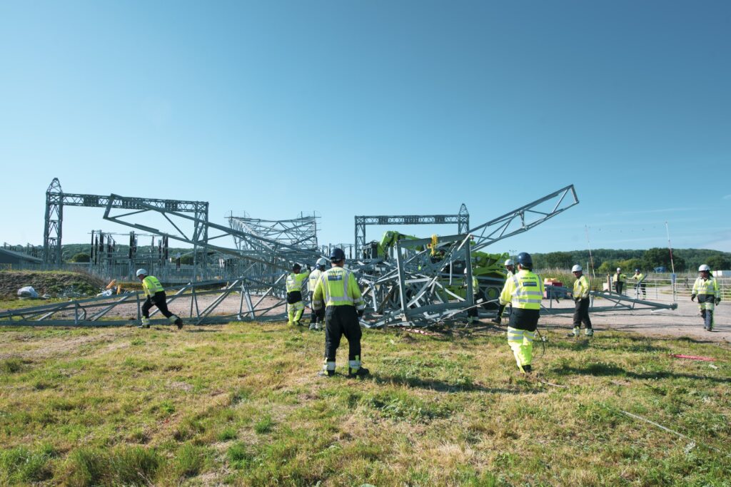 Installed in May 2023, the structure was erected to support the energisation of the southern part of the route between Sandford and Bridgwater. Working in collaboration with construction company, Balfour Beatty, the project team completed the removal with precision, disconnecting wires, cutting the tower legs, and using a winch mounted to a tractor to safely bring down the structure. As with all parts of the project, careful planning, respect for the local environment and the community played a key role in ensuring complete success.