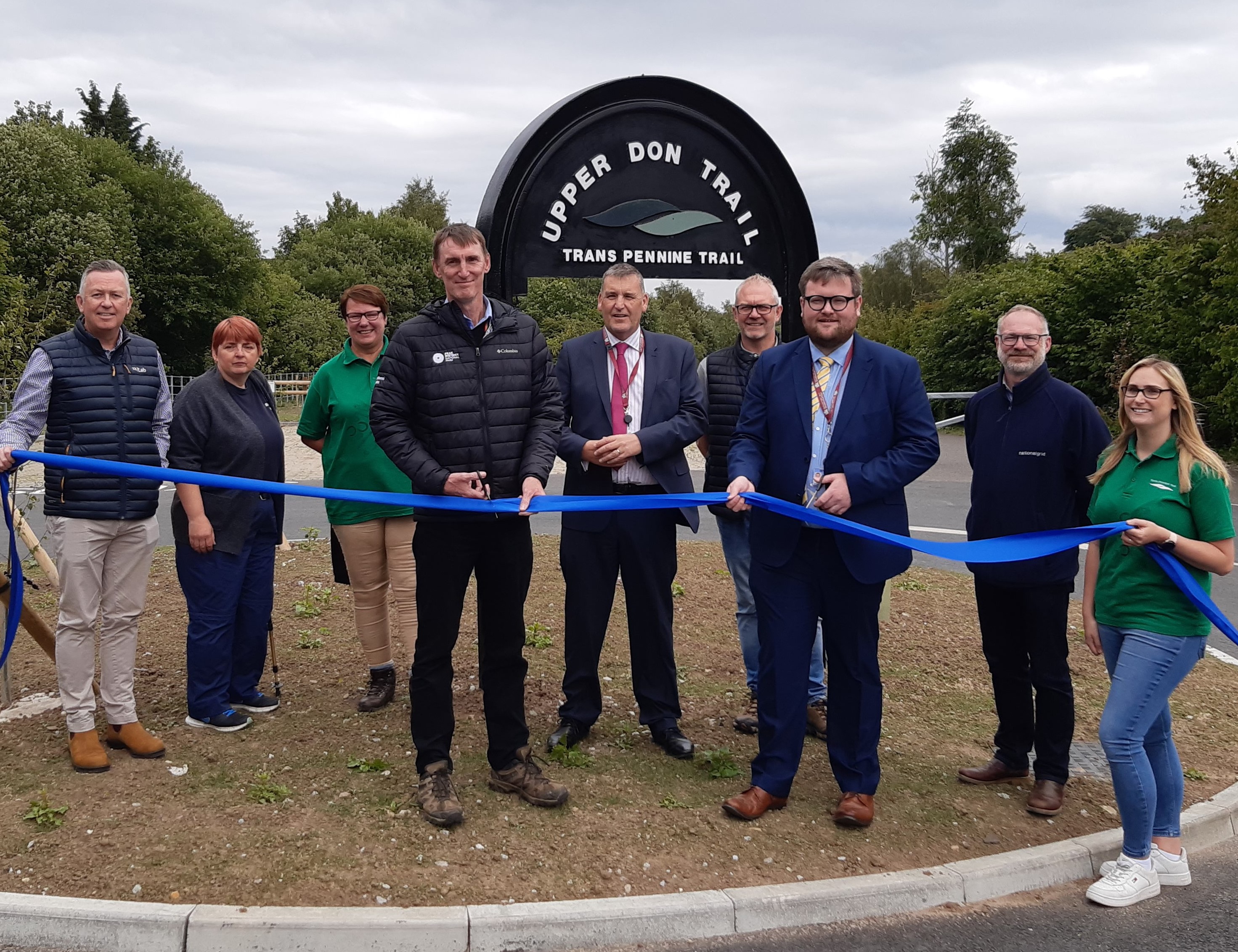 Image – pictured from left to right: Steve Knight-Gregson (External Affairs Manager, National Grid); Sarah Ford (Senior Public Rights of Way Officer, Barnsley Council); Mandy Loach (Lead Officer, Trans Pennine Trail Office); Phil Mulligan (Chief Executive, Peak District National Park Authority); Cllr Kevin Osborne (Cabinet Support Member - Environment & Highways, Barnsley Council); Paul Castle (Service Director – Environment & Transport, Barnsley Council); Cllr James Higginbottom (Cabinet Spokesperson - Environment and Highways, Barnsley Council); Philip Rose (Lead Project Manager, National Grid); Hannah Beaumont (Senior Development Officer, Trans Pennine Trail Office).